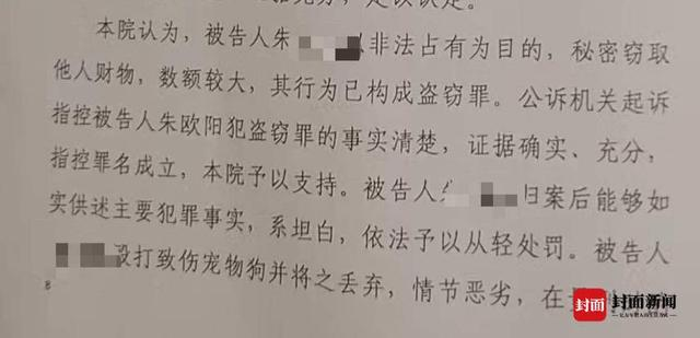 9月2日下午,武侯区人民法院对朱某涉嫌盗窃一案进行公开审理,封面新闻记者进行了旁听。在庭审期间,朱某拒不承认其拿走哈士奇的行为构成盗窃罪,朱某方律师对其进行无罪辩护,认为朱某行为只构成“侵占”。(封面新闻此前报道)