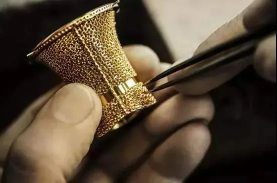 细颈圆瓶的弧度展现出女性身体的曲线美,瓶颈上的珍贵金线是手工绕制而成。