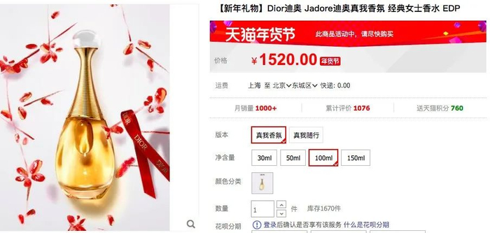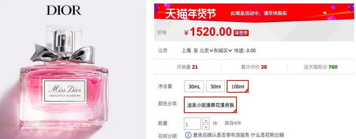 两款香水分别是Dior淡香真我香氛和Dior花漾甜心淡香氛,都是100ml装。