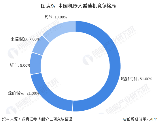 在中国市场,哈默纳科市场占有率超过50%,位列第一,其次是绿的谐波,市占率为21%。