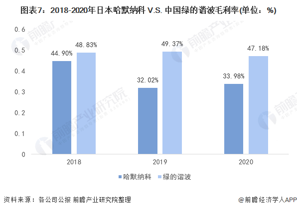 在毛利率方面,绿的谐波整体业务毛利率高于哈默纳科,2018-2020年绿的谐波的毛利率在47%以上,处于较高水平。