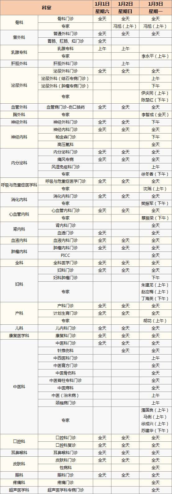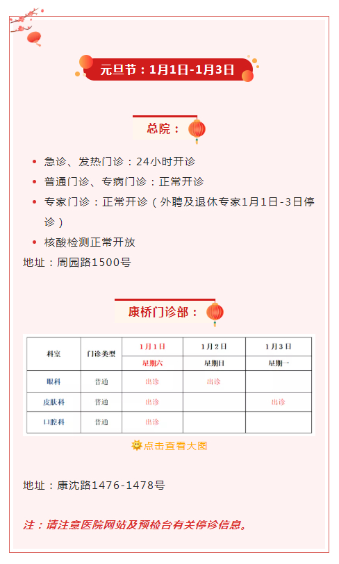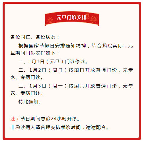 【提示】本市三级医院“元旦”假期门急诊安排在此