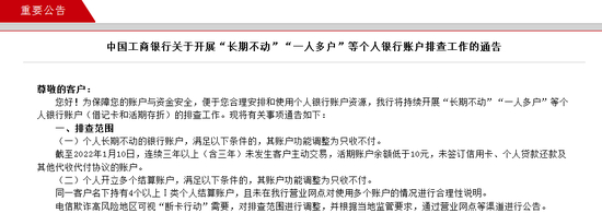 您好!为保障您的账户与资金安全,便于您合理安排和使用个人银行账户资源,我行将持续开展“长期不动”“一人多户”等个人银行账户(借记卡和活期存折)的排查工作。现将有关事项通告如下: