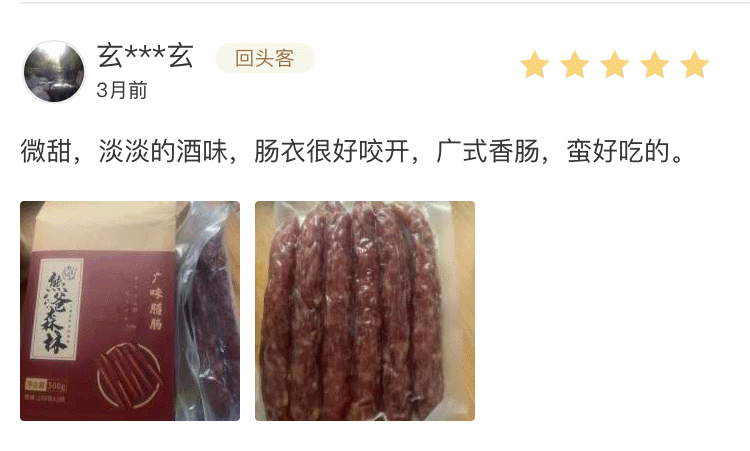 之前给大家推荐过一款“熊爸森林”家的广式腊肠,在一条生活馆好评率达到99.6%。(数据截止至2021年12月28日)
