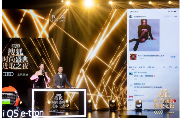 2021搜狐时尚盛典进取之夜结合时尚与科技,连线国内外多位明星嘉宾,通过搜狐视频直播技术和在场嘉宾同屏对话,场外内无延时互动,同享欢乐。明星们也在搜狐新闻APP“关注流”中留下独家美照,吸引粉丝团报道,共同度过时尚盛宴。