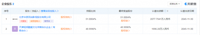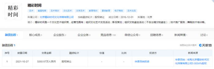 百度百科内容显示,《雄狮少年》出品方包括北京精彩时间文化传媒有限公司、广州易动文化传播有限公司、墨客行影业(北京)有限公司等。而据天眼查APP显示,北京精彩时间文化传媒有限公司控股方之一正是上市公司华录百纳,控股比例达51%。