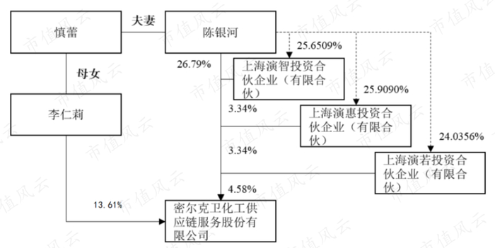 截至三季报,公司控股股东陈银河直接或间接持有公司38.05%的股份,慎蕾与陈银河为夫妻关系,李仁莉是他们的女儿,直接持有公司13.61%的股份,三人为公司实控人。