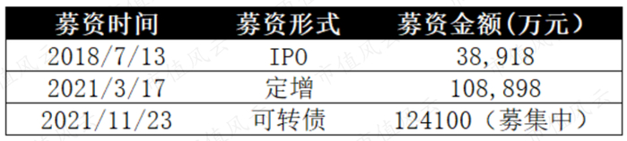 2018年上市以来,公司通过IPO和定增的方式已经获得融资14.78亿,11月23日,公司发布可转债公告,又拟融资12.41亿,用于扩充业务规模。