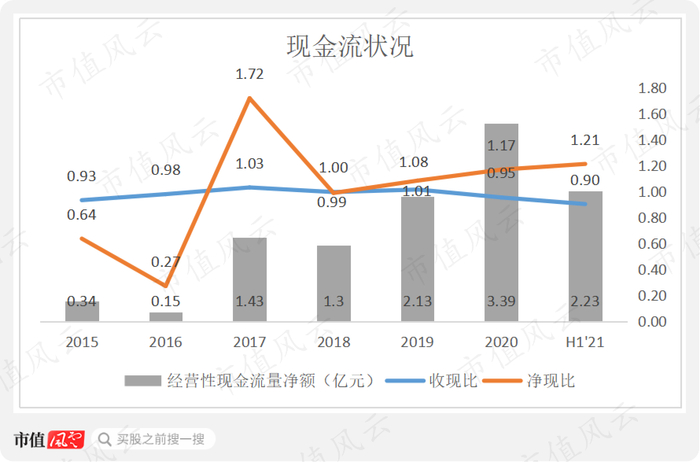 现金流方面,公司的收现比一直稳定在1左右,2018年上市以来,净现比也一直在1以上,且有所上升,经营性现金流量金额也稳步提升,说明公司赚到了真金白银。