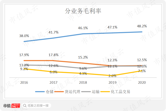 同时,化工品交易业务毛利占比也有了很大提升,2020年达到8.7%。
