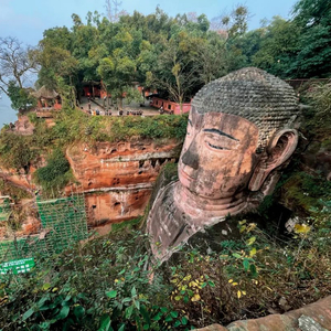 凌云山西面,岷江、青衣江、大渡河三江交汇,高62米的乐山大佛端坐水前。1300年前,古人劈开整座山,耗费三代人,耗时90年,凿出了这座中国最大的摩崖石刻造像。