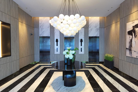 紧邻底蕴丰厚的深圳南头古城,合景泰富·臻林天汇大厦的建筑以高端定制珠宝为灵感,通过手工几何切面艺术设计建筑立面。室内设计中,采用了Kelly hoppen 惯用的中性色调,以东西方文化的融合以及人与自然统一的设计理念,营造出了低调内敛并且蕴藏艺术气息的室内空间;在项目的景观设计中,合景泰富采用日本传统真行草的庭院造园手法,将自然景观融入建筑,营造东方禅意、移步异景的园林空间。
