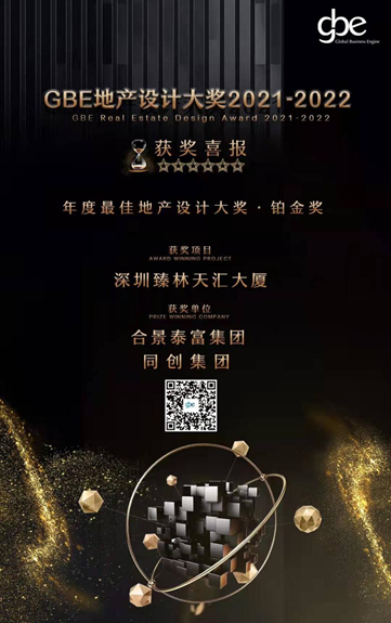 今天,GBE最佳地产设计大奖2021-2022获奖名单正式揭晓。合景泰富集团旗下臻林天汇大厦、重庆合景天銮、海南云上等六大项目斩获6个年度大奖,其中,合景泰富高端商业项目深圳臻林天汇大厦更是获得主办方最高荣誉——年度最佳设计大奖“铂金奖”,突破人居美学标杆的新高度。