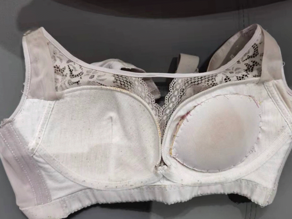 这些文胸设计有一个开口和夹层,可以把义乳放进去,但在实际的使用中有很多问题。比如它的开口普遍会做在罩杯的正中间,正好硌到她们的伤口;还有一些开口过大,放义乳和填充物的夹层空间也特别大,东西放进去之后会上下甚至左右跑动,有患友甚至遇到过不小心掉出去这种尴尬的场景。