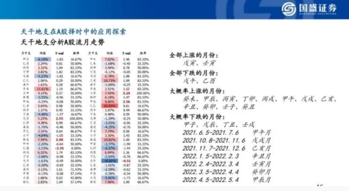 今年10月19日,国盛证券发布了一份名为《天干地支在择时中的应用初探》的研报。这份研报全篇由“天干地支主导的时间周期、“天干地支在择时中的应用思路”、“天干地支在A股择时中的实证探索”三部分组成,一时间吸引了足够的关注。