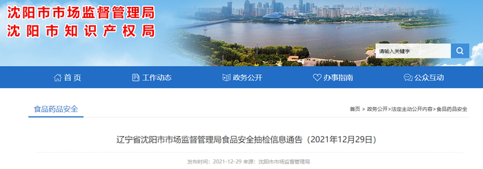 中国质量新闻网讯 据辽宁省沈阳市市场监督管理局网站2021年12月29日发布的食品安全抽检信息通告,沈阳市市场监督管理局抽检餐饮食品49批次,均合格。