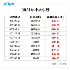 湖北宜化近6倍涨幅领衔 2021年十大牛股新鲜出炉(名单)