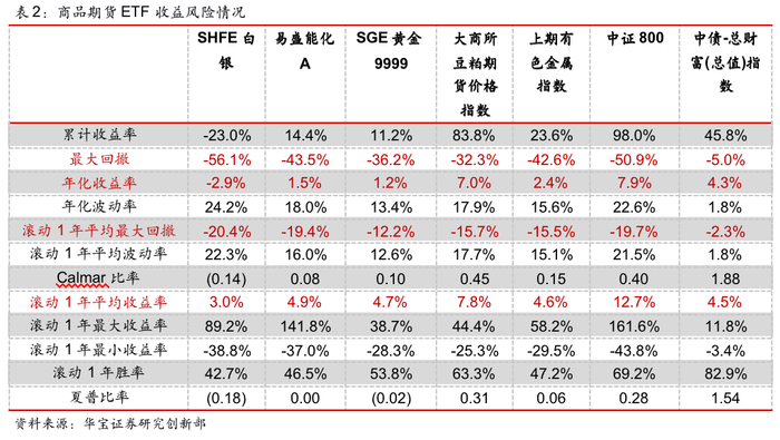 1.2. 商品ETF的收益与波动情况分析