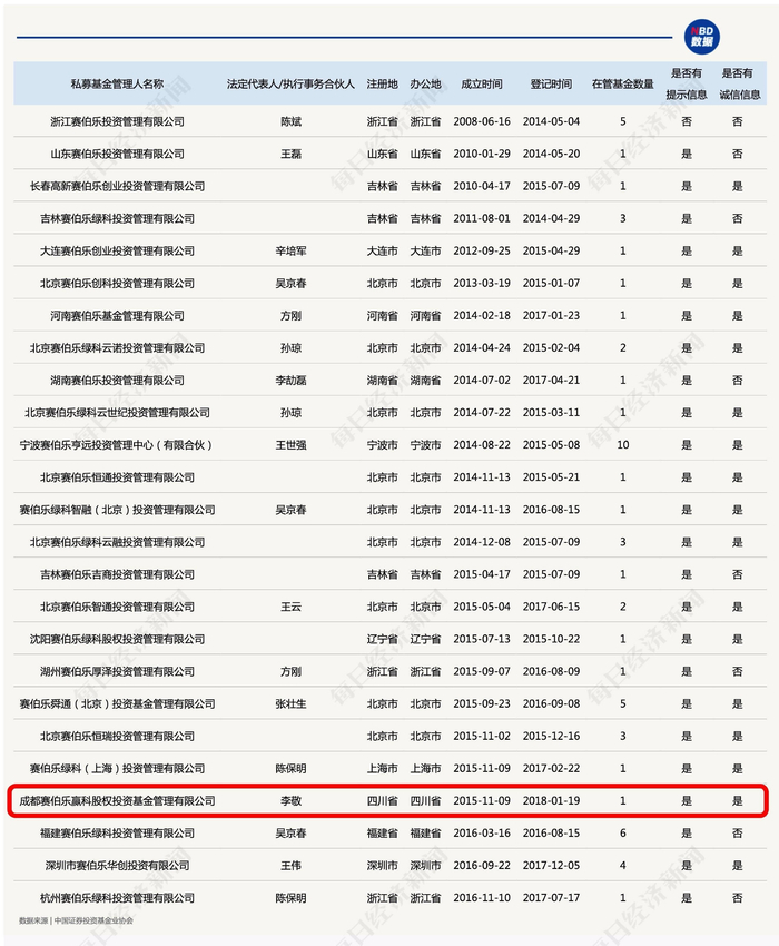 随手举几个例子:2019年福建赛伯乐绿科因两核心高管离职未及时填报被责令改正,2020年大连赛伯乐因私募基金备案信息不真实、不准确被出具警示函,同期宁波赛伯乐也因为从事损害基金财产和投资者利益的投资活动、不勤勉尽责等原因被公开谴责,包括此次事件的当事机构成都赛伯乐赢科也在今年6月被四川证监局出具了警示函。