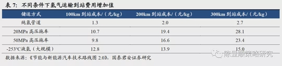 氢能源目前的成本高于其他新型能源。这些高昂成本主要来自于储运氢端而非制氢端。因此尽管制氢端的电解水制氢成本较高,且技术突破的路径较长,但传统化石燃料制氢的整体成本仍然并不高,这体现在氢气的出厂价和终端消费价的巨大差异,导致这一差异的主要瓶颈就在于储运氢的高成本。短期主要通过增加长管拖车数量或运输氢气的瓶组压力降低20%以上的公路运输成本,中长期通过液氢槽车把运输和加注环节的成本降低50-70%,通过氢气输配管道,将氢气单位运输成本降低80%以上。在储运氢端,未来技术攻关和降本增效的空间很大。因此,氢能源基建是加快氢能发展步伐、提高其经济效益的重要环节,应被重点关注。