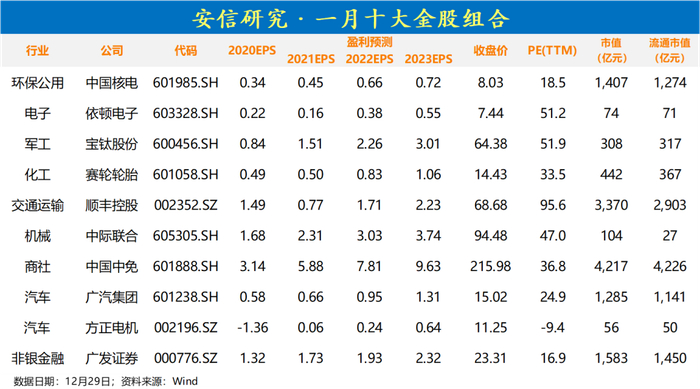 【安信研究】1月十大金股
