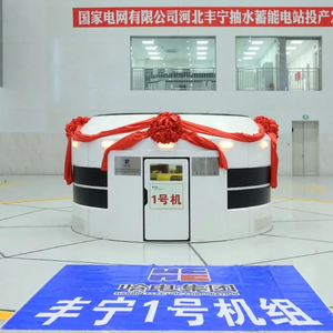 丰宁抽蓄电站位于河北省承德市丰宁满族自治县境内,电站总装机容量3600兆瓦(12台机组),是当今世界总装机容量最大的抽水蓄能电站,一次蓄满可储存新能源电量近4000万度,全年可以消纳新能源87亿度,是世界最大的“超级充电宝”,紧急情况下最大可提供相当于三分之一个三峡水电站的调节出力。电站分两期开发建设,一期工程6台单机容量300兆瓦的抽水蓄能机组,全部由哈电集团电机公司供货。