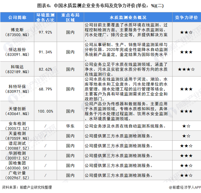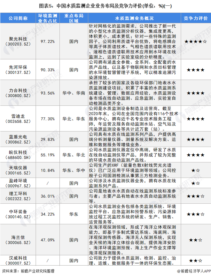 原标题:【行业深度】洞察2022:中国水质监测行业竞争格局及市场份额(附市场集中度、企业竞争力评价等) 来源:前瞻产业研究院