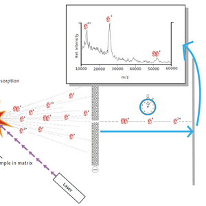 图1:真空中激光快速致热引发的去吸附可能使大分子从液相蒸发进入气相,并通过飞行时间质谱仪(TOF-MS)检测到完整的分子离子峰。来源:https://www.nobelprize.org/uploads/2018/06/advanced-chemistryprize2002.pdf