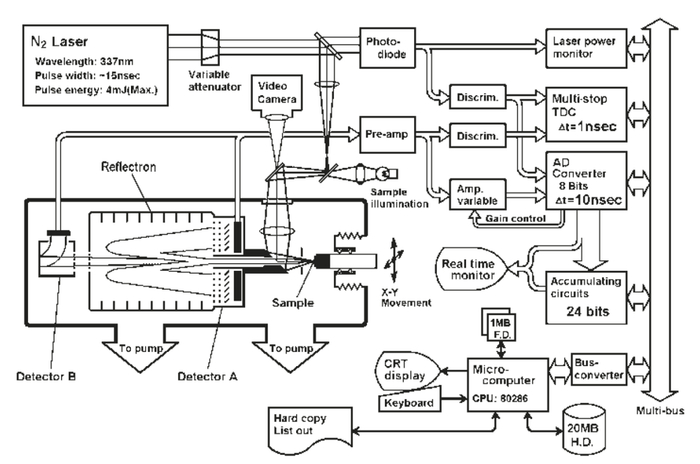 仅仅两个多月后,德国的两位教授卡拉斯(Michael Karas)和希伦坎普(Franz Hillenkamp)就在《分析化学》杂志(Analytical Chemistry)上联名发表了他们独立研制的用尼克酸(nicotinic acid)为介质的LDI新方法。这种方法将被测大分子与尼克酸这类有机小分子共结晶,经过德国团队的不断改良和时间的检验,因其更强的实用性而成为现代介质辅助激光去吸附离子化(MALDI)质谱仪的基础(图11)。