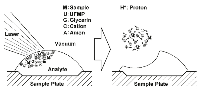 这时岛津研究小组的另一位成员吉田佳一建议他试用超细金属粉末(UFMP,常用的是钴粉),这些纳米颗粒的直径与激光的波长相差不大,能够非常高效地吸收光能,因此UFMP看上去是黑色的。而且由于UFMP的颗粒之间距离狭小,大大降低了热能被发散和丢失的可能性。将UFMP与质谱仪要检测的有机样品混合,就能用激光照射使UFMP在短时间内达到高温。