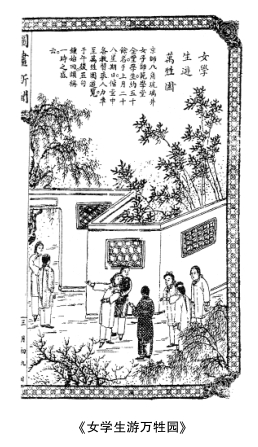 《女学生游万牲园》,《舆论时事报图画新闻》,戊申年(1908)三月初九日 书内配图