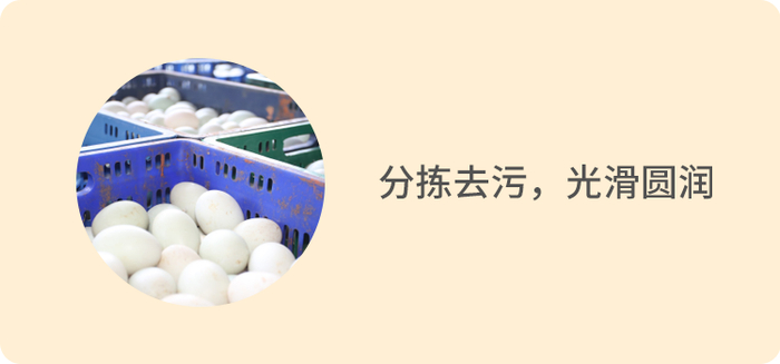 严格执行分拣去污标准,进行产品等级初步筛选与清洁工作,让每一枚海鸭蛋外壳干净、光滑圆润。