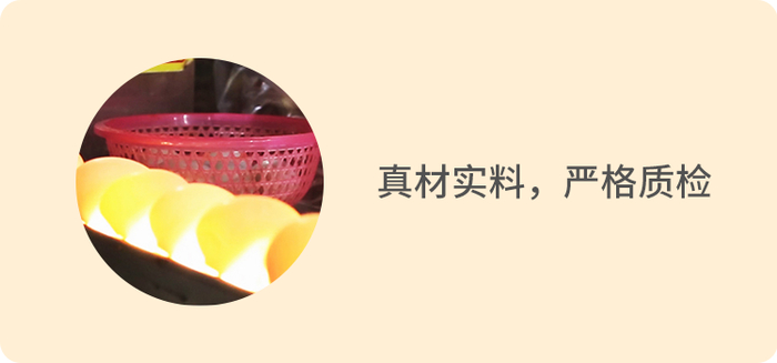 透光质检,保障真材实料,蛋黄清晰,蛋白分明。