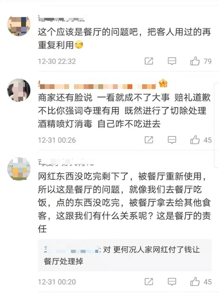 这样的解释,并没有获得网友们的认可。有网友对比了两个缺口,认为商家根本没有做处理。还有网友表示,白冰在拍摄探店视频的最后,已经刷卡将整个奶酪盘买下,但是并没有带走,也就是说,本应废弃的食材店家却在继续使用,实在太过分。