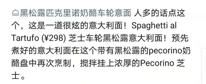 “黑松露匹克利诺奶酪车轮意面”