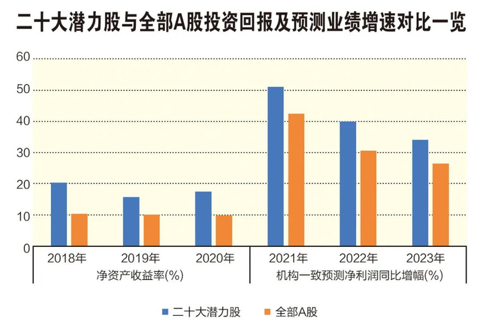 聚焦高质量发展,追求稳健增长,二十大潜力股不俗的表现与它们稳定的投资回报、持续高增长的业绩有一定关系。