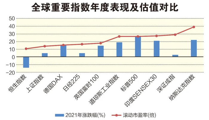 放眼2021年全球资本市场,标普500、纳斯达克指数年度涨幅均超过20%。A股市场波澜不惊,上证指数年度涨幅不到5%。