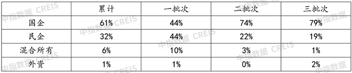 表:22城集中供地不同性质企业拿地占比
