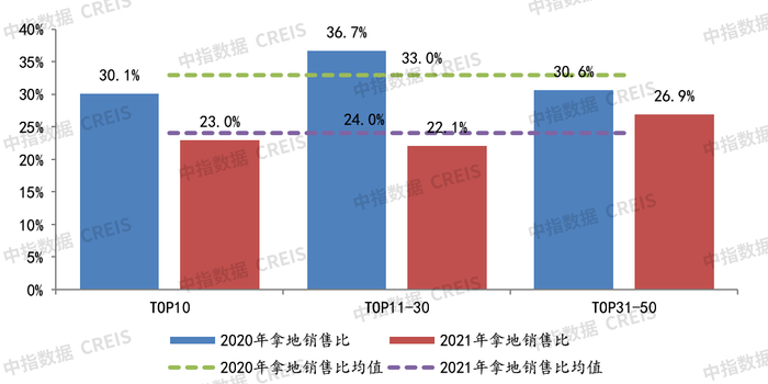 图:2021年50家代表房企各阵营拿地销售比