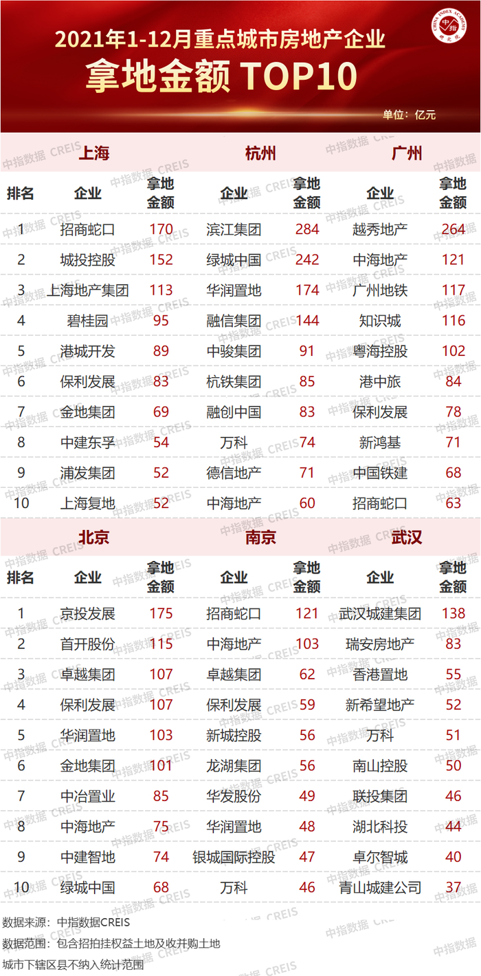 拿地数据范围:包含招拍挂权益土地及收并购土地