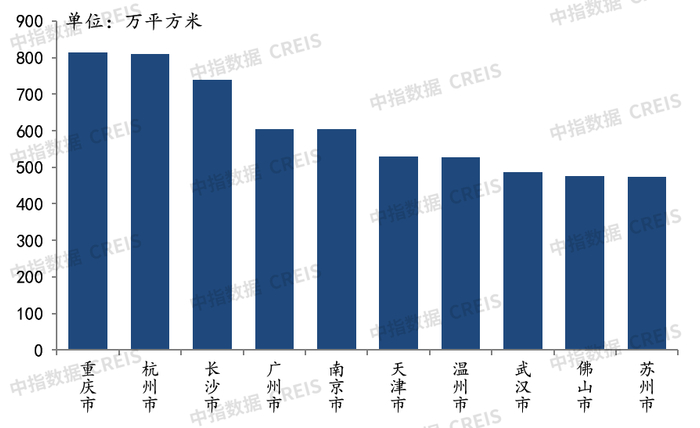 拿地面积前十城市基本保持不变