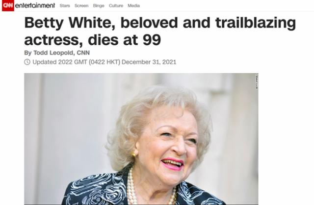 CNN称,现年99岁的贝蒂·怀特,本将于2022年1月17日迎来她的100岁生日。