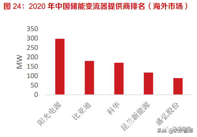 公司业绩持续突破,储能业务在国内外市场中国企业出货量排名均居第一。在北美,阳光电源的工 商业储能市场份额就超过了 20%;在澳洲,通过与分销商的深度合作,阳光电源户用光储系统市 占率超过 24%。2020 年相继为英国门迪 100MW/100MWh 储能电站、青海特高压外送基地电源配 置项目、山东莱州光储 融合电站以及安徽谯北风储示范电站等多个项目提供整体解决方案。