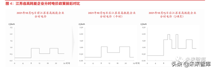 2)12 省高耗能企业用电价格按照普通用户 1.5 倍执行,高耗能企业用电成本进一步提升。10 月 31 日,江苏省、北京市、甘肃省等地国网电力公司发布代理购电公告,自 2021 年 12 月 1 日起, 高耗能企业购电价格按照普通代理购电用户 1.5 倍执行。这一政策的发布,进一步提高了高耗能企 业的用电成本。