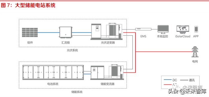 工商业储能系统与储能电站系统都包括电池系统+BMS、PCS、EMS、变压器,机架,连接线缆、 汇流柜、防雷及接地系统、监控及报警系统等,系统均进行模块化设计,系统电压、容量灵活配置。
