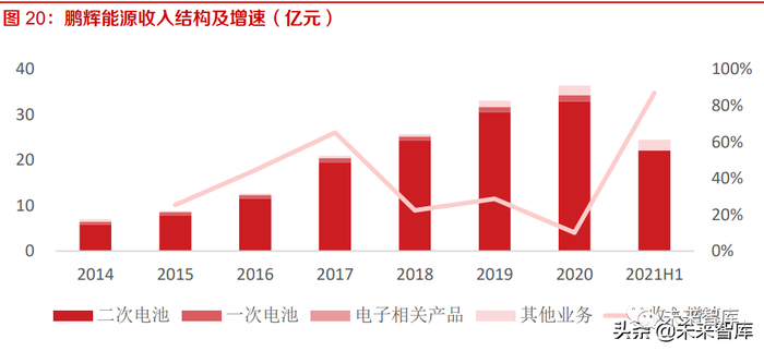 公司深耕锂离子电池十余年,是国内电池品类最全的厂商之一。公司的电池产品涵盖锂离子电池、 一次电池(锂铁电池、锂锰电池等)、镍氢电池等,公司产品应用场景广泛,包括储能(含 UPS 备用电源、通讯基站备用电源、便携式储能、大型用户侧储能、工商业用户侧储能、电网储能、家 用储能等)、消费数码(平板电脑、电脑、充电宝、安防、智能物联、灯具、电子烟、ETC、TWS 耳机、蓝牙设备、智能穿戴等)、新能源汽车(含低速车、乘用车、专用车、客车、大巴车等)、 轻型动力(含电动工具、电动自行车、电动摩托车、启动电源、平衡车、无人机、扫地机、吸尘器 等)等领域。2021 年上半年,公司实现营业收入 24.54 亿元,同比增长 87%。