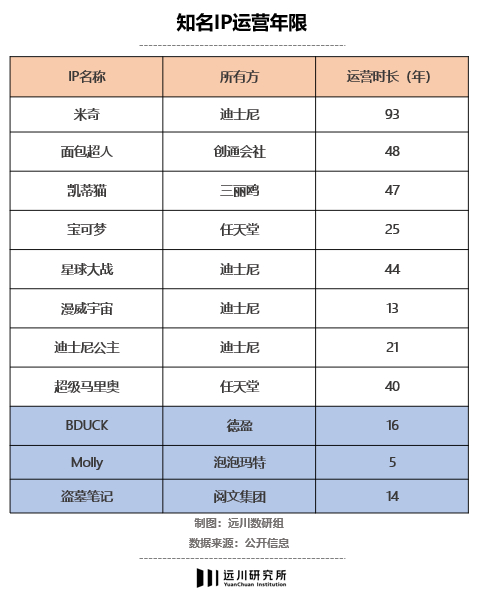 从时间上来看,中国文娱产业的兴起满打满算不过二三十年,目前国内IP最大的运营商阅文集团,它才成立于2015年,旗下的网络文学IP诞生最长也才21年,BDUCK的实际运营时间也为16年,国内基本上没有20年以上的IP。
