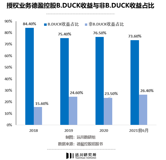 德盈控股的主营业务是角色授权,2021年上半年该业务收入占比达总营收的47.6%。公司最显著的特点是“猛薅小黄鸭”——这项业务5800多万的营收几乎全靠BDUCK一个IP形象的反复使用。公司推出过其他形象,但效果甚微。