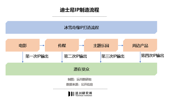 以《冰雪奇缘》为例,迪士尼的四个阶段是这样运作的: