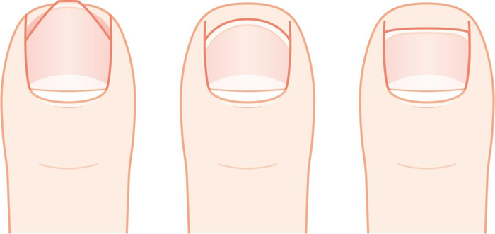 最常见的是趾甲剪得太短、太深,或两边留有尖尖的角。